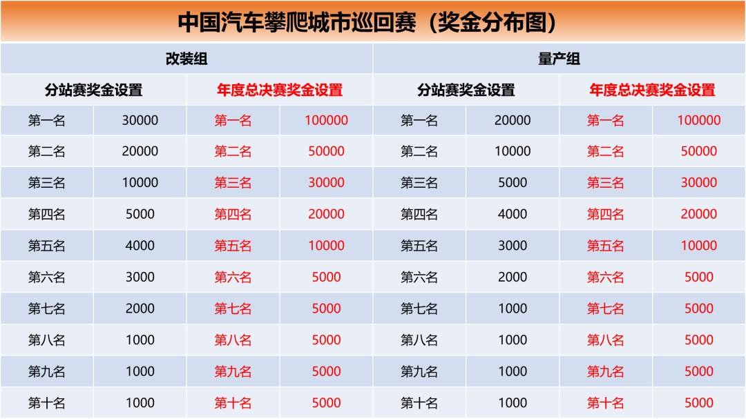 (一)改装组、量产组分站赛及年度总决赛奖金设置