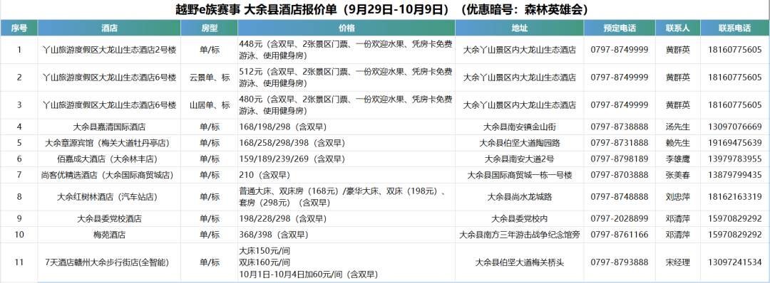 2、景区福利大放送:活动期间针对森林英雄会参赛选手及随车人员,全县收费景区门票全免(不含景区内二次消费项目):包括丫山国家旅游度假区、梅关景区、三月三景区、忘忧谷景区,让车友在赛事之余深度感受“红古绿金"文化魅力。